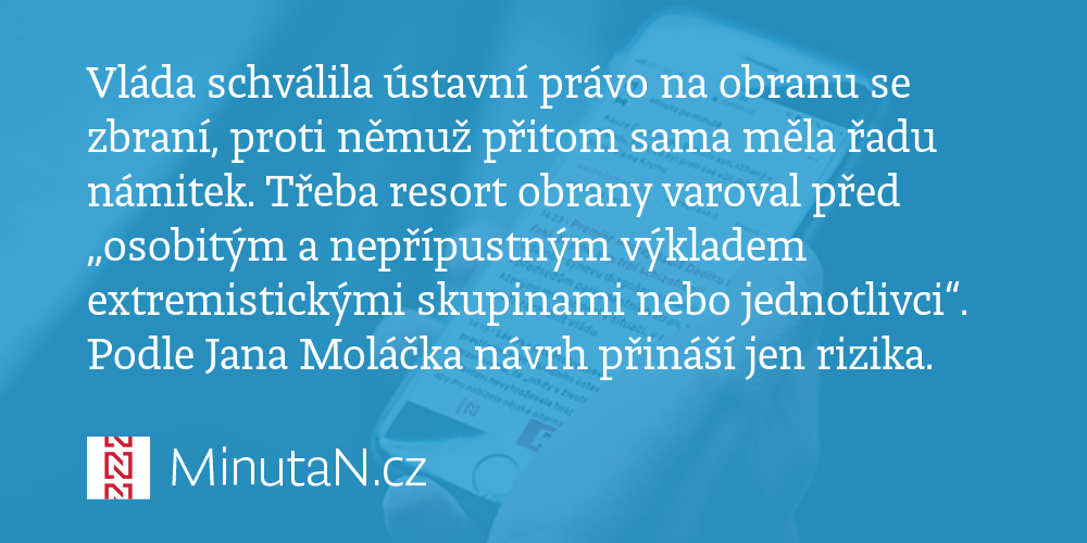 „změna tak navrhuje explicitní právo na ochranu života. Října 2021 bude účinné doplnění listiny základních práv a svobod, které bude výslovně zakotvovat právo na obranu života se zbraní na ústavní úrovni. Pozornost veřejnosti vyvolala zejména … Nové ústavní právo bránit se zbraní.